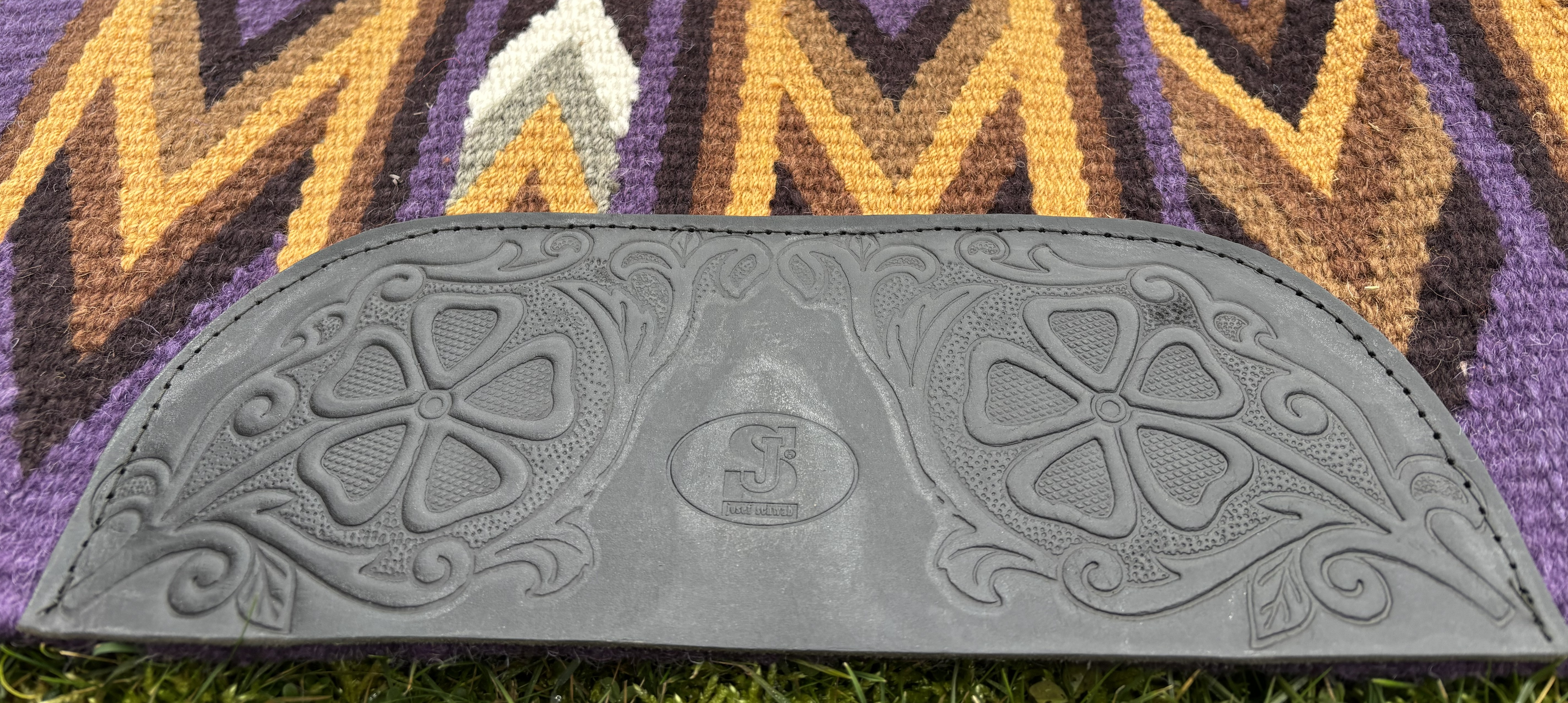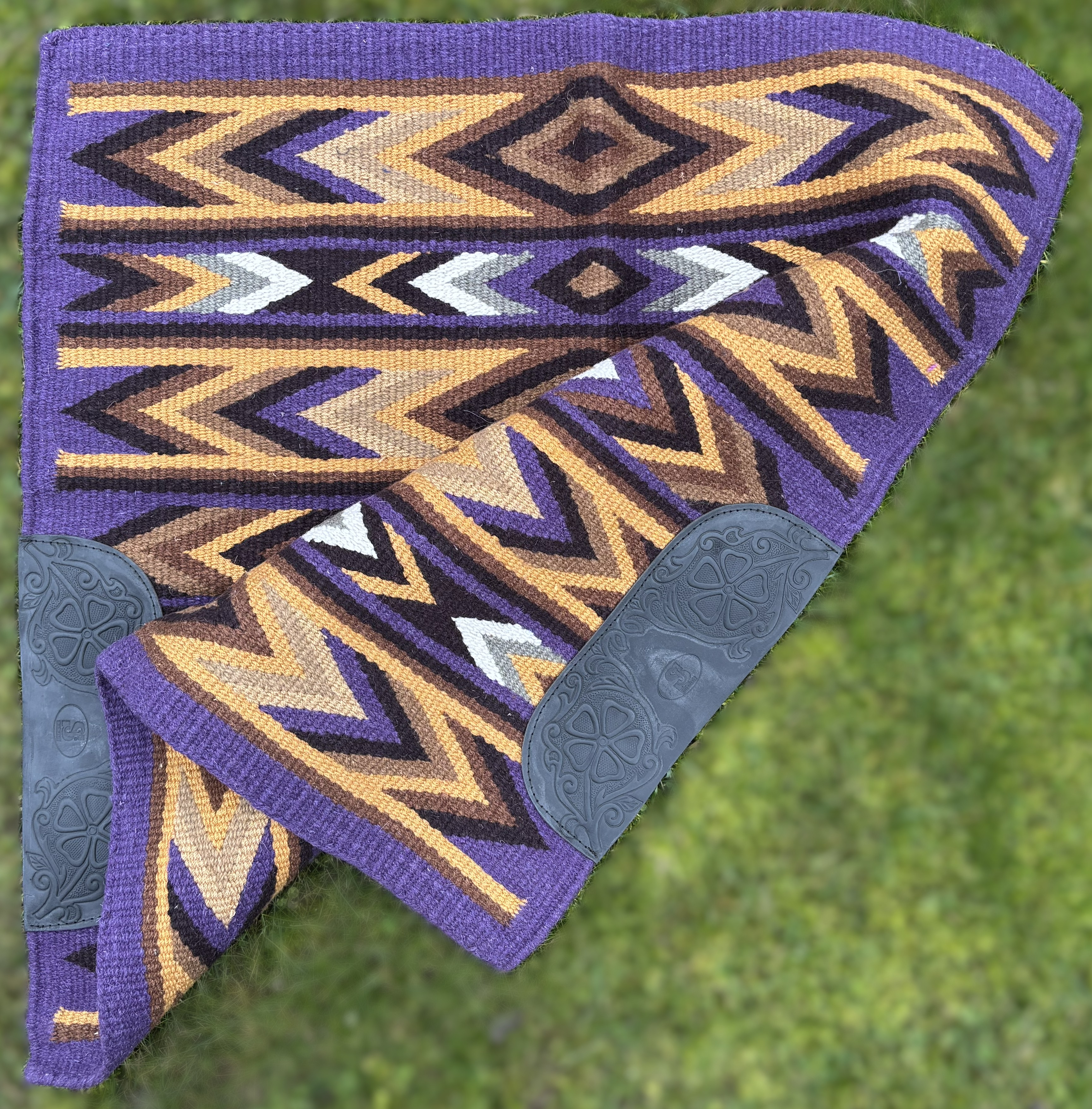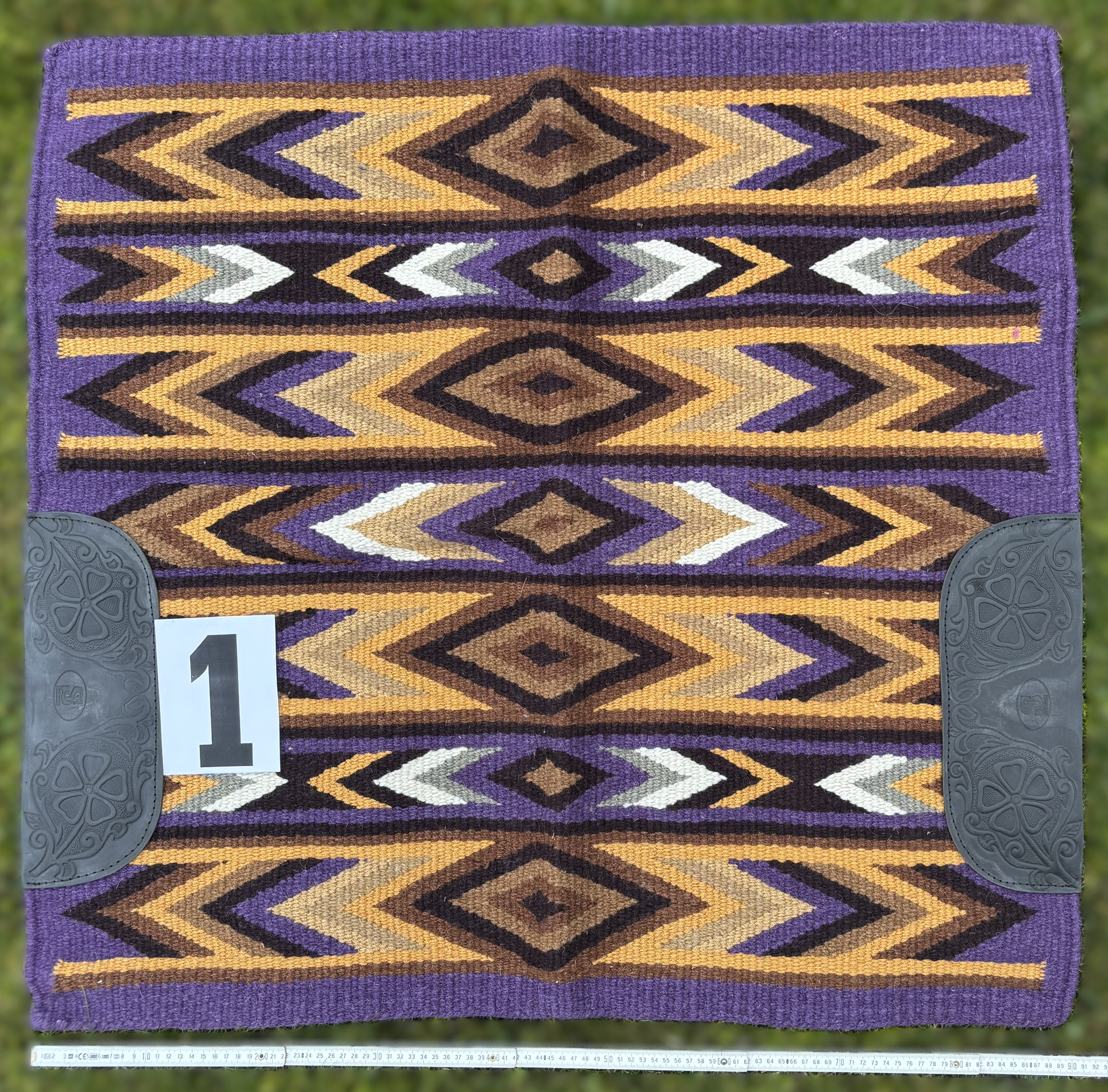 Westernová podsedlová deka č.1). Deka je kompletně vyrobená pouze z novozélandské vlny, bez umělin. Deka je v kontaktu s fendrovými řemeny vyztužená dekorovanou kůží. Rozměr deky 88x88cm, stabilní tlouštka 0,7cm, váha 1,9kg. Několik výhod materiálu: Vlna je přírodní izolant, který udržuje teplo v zimě a chlad v létě, což pomáhá koni udržovat optimální tělesnou teplotu. Novozélandská vlna dokáže absorbovat vlhkost, což pomáhá udržovat koňskou pokožku suchou a snižuje riziko opruzenin. Deky jsou trvanlivé a odolné proti opotřebení.