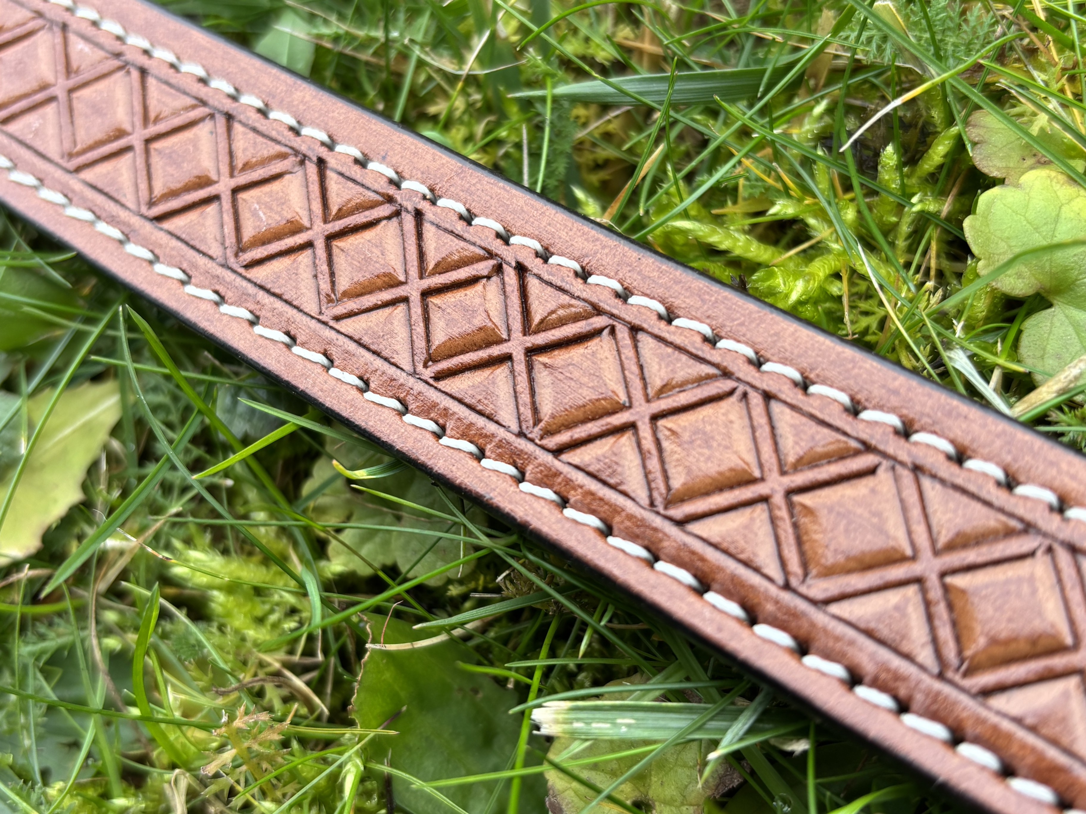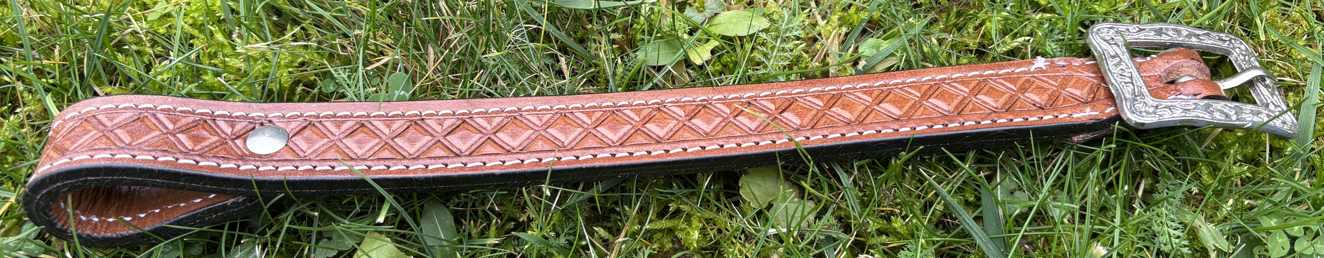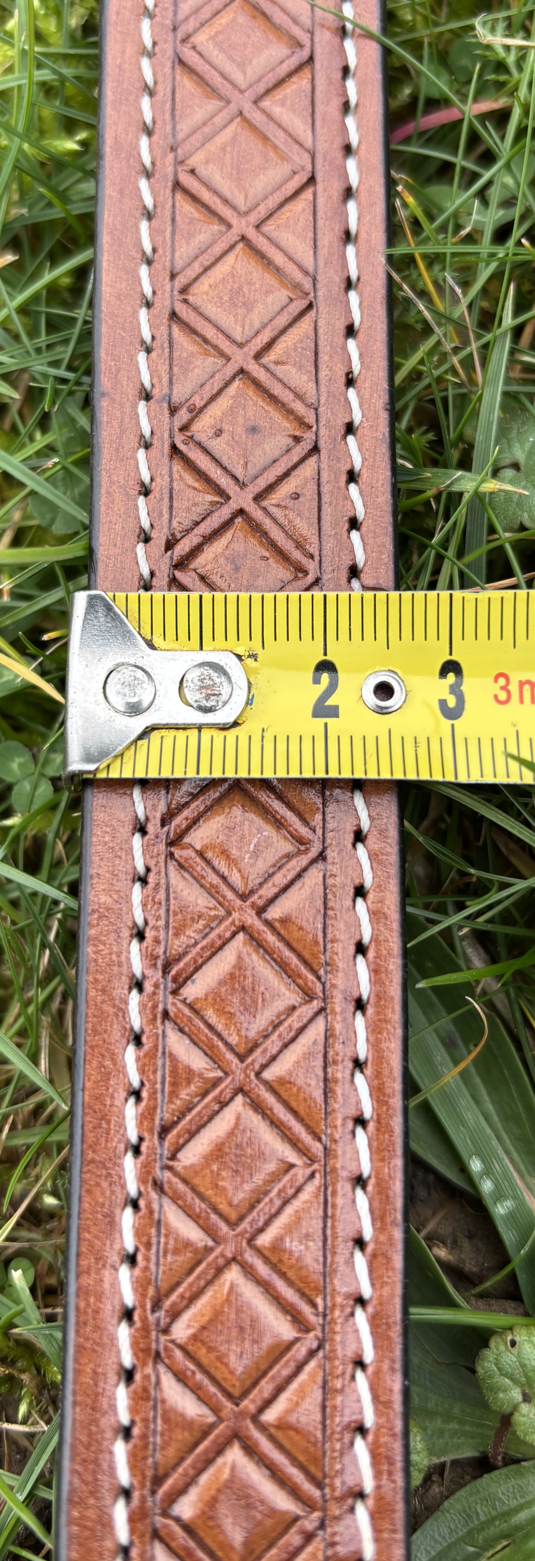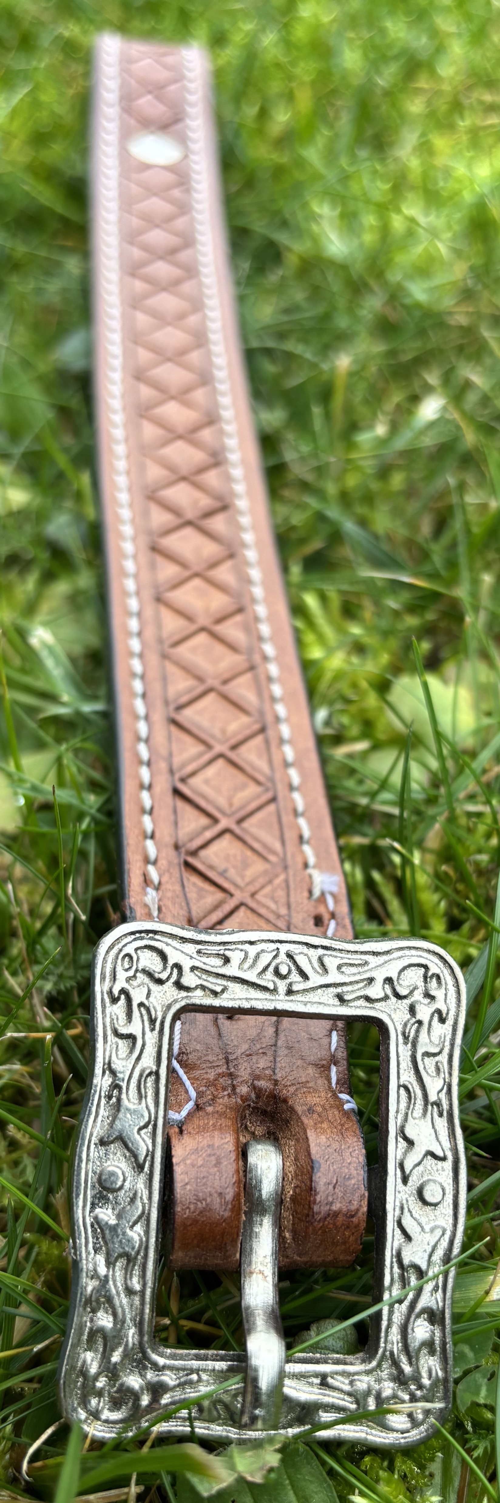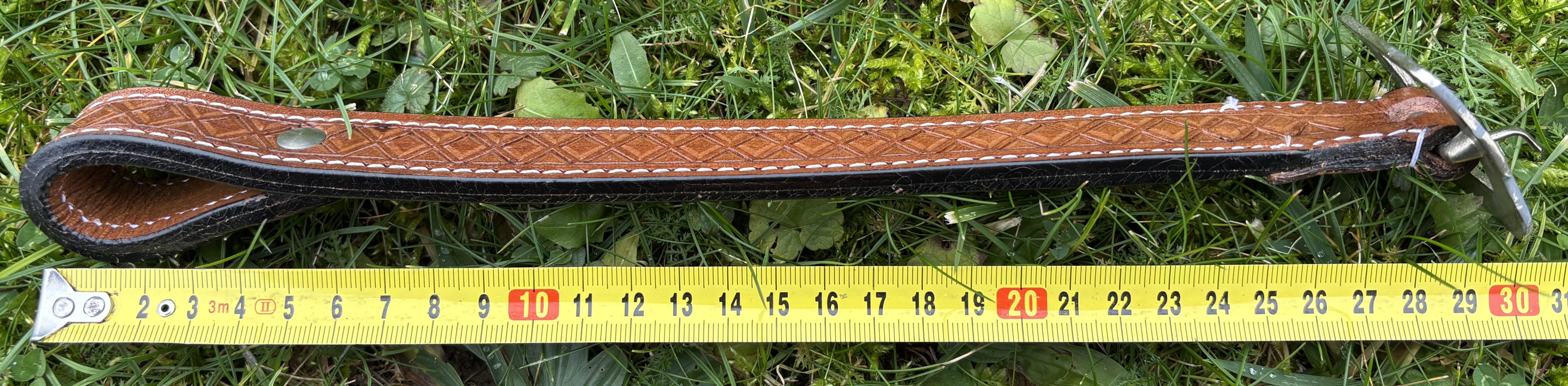 Lícnice k westernové uzdečce, hnědá v dekoraci Basket. Délka 29cm. Vnitřní prostupová šířka přezky 1,9cm. Skladem jeden kus!! Ruční výroba.